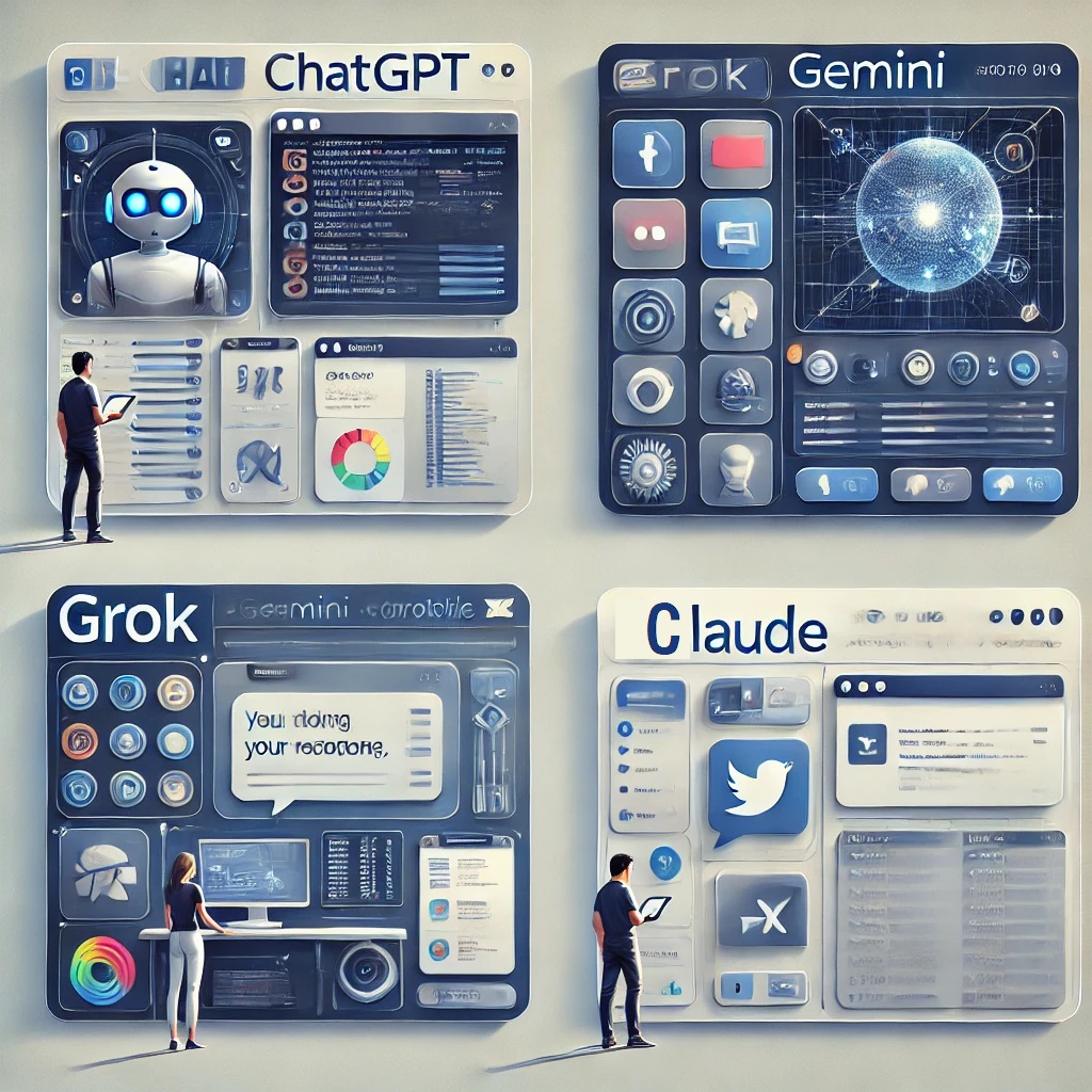 요즘 뜨고 있는 생성형 AI 플랫폼, 도대체 뭐가 다를까요? 오늘은 ChatGPT, Gemini, Grok, Claude의 차이점을 기능, 활용도, 통합성 측면에서 상세히 비교 분석하고, 각 플랫폼이 제공하는 고유한 장점과 활용 시나리오를 통해 올바른 선택을 할 수 있도록 가이드를 제공하겠습니다.